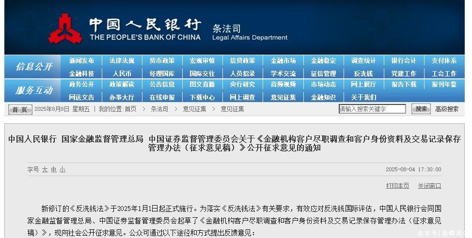 近日,中国人民银行、金融监管总局、中国证监会联合发布《金融机构客户尽职调查和客户身份资料及交易记录保存管理办法(征求意见稿)》(以下简称《征求意见稿》),并于8月4日~9月3日面向社会公开征求意见。